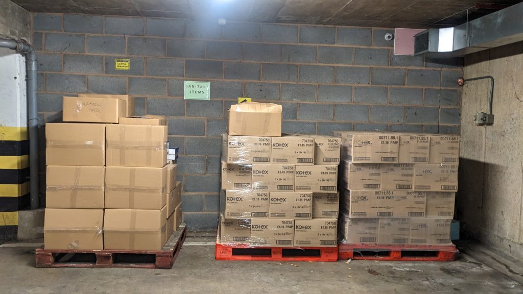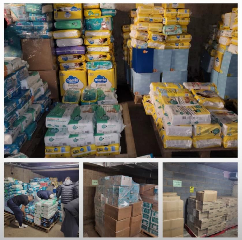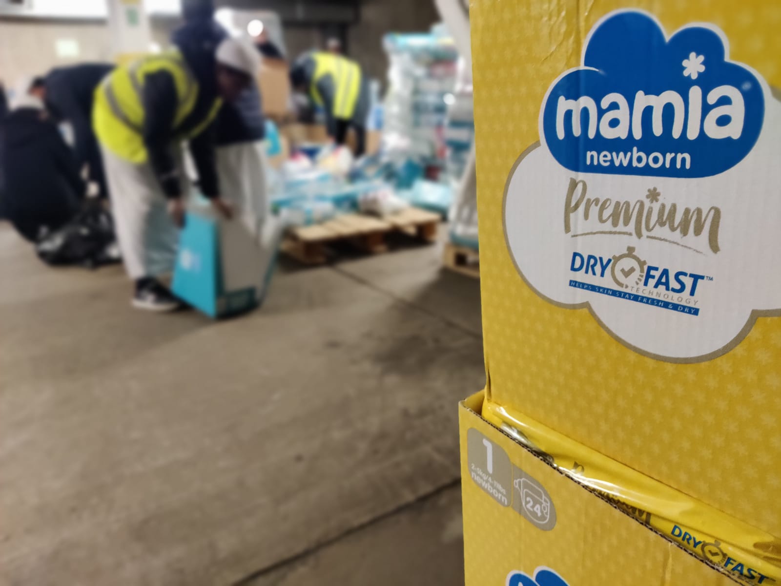 Over 25 pallets of nappies, wipes, sanitary products and milk powder was sent via Ummah Welfare Trust and Leicester Turkish Muslims.